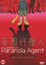 It's been critically lauded and given more column inches in DVD mags than any anime series that I can remember, and we've now had the chance to see what all the fuss is about. Paranoia Agent starts when a designer, cracking under the pressure of coming up with a new character to rival the success of her previous creation, is attacked by a mysterious baseball bat-wielding assailant whilst going home at night. Two detectives brought in to look at the assault soon find they are dealing with a lot more than they first thought - what is the identity of the mystery rollerblading assailant dubbed 'Li'l Slugger' by the press? Is it a child or an adult? And more importantly, considering the victim's mental state at the time of the attack, did it actually happen at all? Things are further complicated when more attacks occur, each victim having a connection to the previous one, and each suffering from extreme stress, anxiety or mental disorder at the time... Director Satoshi Kon cut his teeth on feature films so this series is a bit of a departure for him, but he has sacrificed none of his vision in the transition to the small screen. Paranoia Agent vol 1 is constructed like a series of vignettes, with each of the four episodes featuring a different character who often appeared briefly in the previous episode, and the story winds between them throwing up questions at every turn. It is masterfully constructed, surreal, dark, intriguing and utterly brilliant. Paranoia Agent vol 1 effortlessly shifts from David Lynch inspired surrealism (check out the next episode previews, which feature an ageing butler standing in odd places) to police drama via Kon's own special brand of suspense and intrigue. The characterisation is excellent throughout, successfully drawing you into the psyche of each neuroses-ridden character, and it's impressive how the characters work as well when they are in the background as they do when they are in the spotlight. The story weaves a complex web of intrigue around them which touches on themes covered in Kon's earlier films, with some parts reminiscent of Perfect Blue, but these themes are approached in different ways and there is plenty of originality on offer too. The series effectively depicts the seedy underbelly to the respectable personas many characters outwardly project, often to very creepy effect, and the visuals and music are masterful throughout. By the end of the volume we have seen a successful designer cracking under pressure, an attention craving schoolboy consumed by jealousy, a mild mannered teaching assistant fighting a personal battle against multiple personality disorder and a policeman losing himself in comic books in an attempt to justify the crimes he is committing, yet you will still be no wiser as to who the assailant is than the middle-aged detective who is trying to piece it all together. From that description it does sound like David Lynch without the cherry pie but, despite some stylistic similarities, from the evidence of this first volume Paranoia Agent is far more accessible and less confusing than most of Lynch's works. What really impresses me is that I have no idea where it is going to go next, something that is quite rare nowadays. Just when you think you have things worked out the series throws something new at you, and there is a real twist in the tail of this volume which will completely throw you off. I really can't wait for the next volume of Paranoia Agent, this one succeeded in hooking me from the first bar of the superbly odd opening song to the surreal next episode preview at the end of episode 4. MVM have really pushed the boat out with their releases this year, but with a start like this Paranoia Agent could really prove to be the cream of the crop. Ratings Feature: