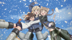 to why the army and navy continue to try and fight the Neuroi when only the witches seem to be capable of defeating them. Conventional weapons are shown time and time again to have no effect, yet that doesn't stop the navy sending fleet after fleet at them and losing ships left, right and centre. It just doesn't make any sense. The story doesn't throw up any real surprises and there's little in the series that you haven't seen before either. Nonetheless Strike Witches Series 2 is something I didn't expect to enjoy, but I actually did. It takes fanservice to a new level, but unlike the abhorrent Dance in the Vampire Bund there's nothing really seedy or objectionable about it. In fact it often seems more farcical than pervy. Visually it's really impressive with some fantastic effects in the aerial battles and some real care and attention put into the backgrounds and character designs, but it's the charming and likeable cast that really makes it worth watching. After the national stereotypes of Hetalia it's great to see the series avoiding lazy characterisation with an engaging cast that are all based on real World War 2 flying aces. God only knows what they'd make of their depictions, but for the viewer it makes for a varied and interesting set of characters which elevate the series beyond the clichés and below par storyline. Strike Witches 2 is not earth-shatteringly good or even above average, but it is an entertaining and fun bit of hokum with memorable characters, plenty of action and a metric tonne of fanservice. It looks great and provided you leave your brain at the door there's plenty to enjoy, just don't expect much in the story department. Extras: A couple of audio commentaries from the English dub cast and crew for episodes 5 and 9, and a clean opening and ending sequence grace the discs. Strangely the series actually has each ending sequence sung by a different person, but we only get one of the sequences here. A bit of a missed opportunity, as is the lack of chapters in the episodes themselves, which makes it impossible to skip the credits without fast forwarding. Ratings Feature: