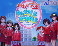 When we visited Japan for the first time we spent some time in Ikebukuro's Sega Arcade, and had a few hotly contested games on Puzzle Bobble (better known as Bust-A-Move in the UK). However, this version of the classic puzzle game had a twist - it was themed to the superb Azumanga Daioh!! Many people are familiar with Bust-A-Move, but for those who aren't the premise is very simple - basically you have to fire coloured bubbles up the screen to create chains of three or more bubbles of the same colour. The bubbles are fired from an arrow in the centre of the screen in the direction it points, and you control the direction the arrow points by pressing left or right. Bubbles that don't pop build up towards the bottom of the screen and if they reach the bottom you lose, whereas if you clear the screen you win. In versus mode there are two playing fields on the screen and bubbles you pop cause more bubbles to appear in the opponents field, and the player whose field fills with unpopped bubbles loses. Here's a link to a nice visual explanation... The game itself is insanely addictive, great fun, incredibly easy to play - the only controls are 'left', 'right' and 'fire' - and has its own bright and colourful style, so what is this themed version like? Well to start with the gameplay is as good as it ever was, with the changes being mostly visual. Gone is the cast of extremely odd characters from the other games in the series (no more Pukadon and his giant white grinning erection), and in comes a cast of six chibi Azumanga characters - Chiyo, Osaka, Sakaki, Yomi, Tomo and Kagura. Each character has their own mascot supporter, such as Chiyo's dog Mr Tadakichi, and all seem to be voiced by their original voice actors (in Japanese). The character art is good and each character has plenty of fun poses and animations to display, it is also worth noting that in keeping with the cheerful feel of the series there is a two-player co-operative mode too. The presentation throughout is great and the only gripe that can be made is that when you complete a high scoring chain of bubble pops a large image of your triumphant character appears on your side of the screen, obscuring most of it. This wouldn't be too much of a problem if it happened once or twice a game, but it happens quite often and can cause you to miss shots. To be honest though this is the only down point of the game (the fact that everything is in Japanese could be considered a downside, but this is a Japanese game so it would be unfair to do so), and it's more than outweighed by the pluses. Azumanga Daioh Puzzle Bobble is fun, addictive and endlessly playable, with the Azumanga Daioh branding bringing a sense of familiarity to what was already one of the best puzzle games ever made. Apart from the co-operative mode, Azumanga Daioh Puzzle Bobble brings little new to the series, but it is a fun and highly addictive game which makes for a strangely apt adaptation of the fun and carefree Azumanga Daioh. Well worth a play (or seventeen) if you are lucky enough to find it in an arcade. Ratings Game: