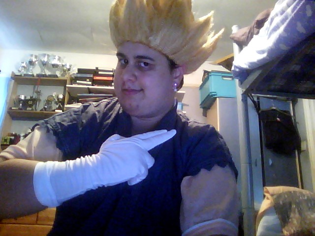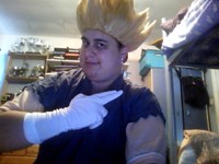 of my avatar on the MMO MapleStory, who wears a Super Saiyan wig