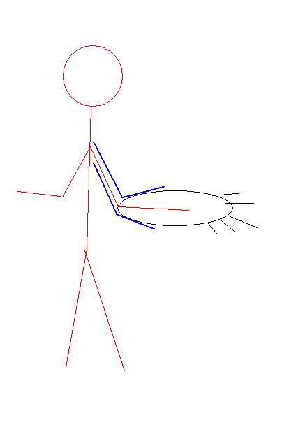 "I always begin by taking as many screen shots of the character as possible so I know the prop inside out then making sketches of ideas I have on how to build it. If you look at this pic they don't have to be detailed to gather an idea of how it will work - the red is my friend Alex (who'll wear the finished arm), the blue is the sleeve which will go over the arm and up to Alex's shoulder allowing him to move his arm, and the black will be the forearm and claw. This will be made out of polystyrene covered with fibreglass."