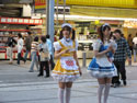 3. Traditional Maid Cafe This was in fact the first cafe we visited in Tokyo and its cute factor was simply off the scale. The girls were all dressed up in pretty, frilly pink and brown maid outfits. As you walked in you are welcomed in chorus by all the maids in the cafe, you are then showed your seat and shown the menus of the all the extremely cute food that you can buy. You may ask how can food be cute? But if you saw my Usagi (rabbit) cheesecake with chocolate eyes, cream ears and strawberry coulee mouth you would know what I mean. It was almost sad to eat and ruin the lovely artwork that had been created on my plate! I washed this down with some lovely melon soda (why isn't this available in the UK?). Of course during this time we were looked after by our maid who ensured that we were happy with our food and give thanks for it. This involved making a love heart shape with our hand and saying really loudly "Moé Moé Kyu!!!!". You were also entertained by the light and fluffy J-pop being played in the room.