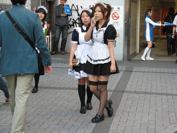 1. Cafe with Cat This is pretty much like any normal restaurant with the only difference being that the girls are dressed in a cat maid outfit (see picture, left). It is not over the top cuteness and you wont be able to play any maid games with them either. There is though a really nice selection of food such as curries (with the rice moulded into a heart shape), snacks and desserts. 2. Maiko Cafe. Yes this is a cafe where all the girls dress up in traditional maiko uniforms. The settings in which you sit and eat are also very traditional in feel, so much so that you are expected to take off your shoes at the door. Here the cuteness factor has gone up another level...as the maids will present you with all the food and drink that you have eaten. An example of this |