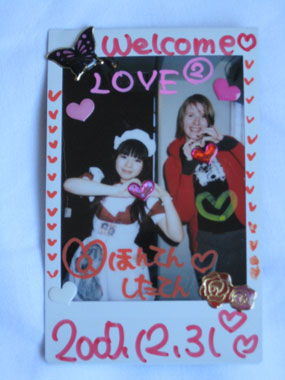 is when I ordered a coffee I was expected to say "ichi moé, ni moé" to describe how many sugars I wished to have, and when I wanted no more sugar I had to reply with "Nyan Nyan" (sound of a cat). As part of the service you can also pay extra to play a game with a maid. This is something I was quite happy to do. While I was there I was offered to play one of three games. The first was Mahjong, which I had no clue how to play, the second was a game of picking up beans and placing them in another bowl in three minutes, and lets face it I wasn't going to win that. The final game was a game of Connect Four which was the choice that I made. I somehow won the game (I'm not sure if she let me) and I was able to claim a prize out of the gashapon machine which was a cute mobile phone charm in which the lovely maid signed.
