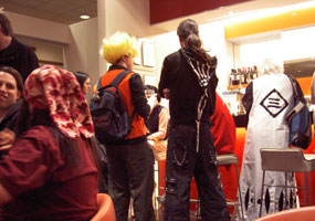outfits and serve tea, coffee and cakes to hungry con-goers.