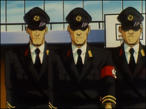 Next time you are out on the town and you see a weedy, girly-looking guy with long blonde hair, be sure to leave him well alone. If anime is anything to go by he will be highly skilled in martial arts, a swordmaster and be able to produce a fireball that can take out the city centre. Yes, it is the standard 'effeminate posh subordinate' who are always curiously high up the pecking order of bad guys in anime. While they are not preening themselves they are usually cooking up evil schemes and taking over people with rubbish mental powers rather then doing any actually fighting - they save that for the teenager they will inevitably go up against! Quite why major villains keep on employing these guys is beyond me as they never do anything worthy of said employer's evil. Start employing alpha males I say! 1. Nazis May 8th 1945. The allies have closed